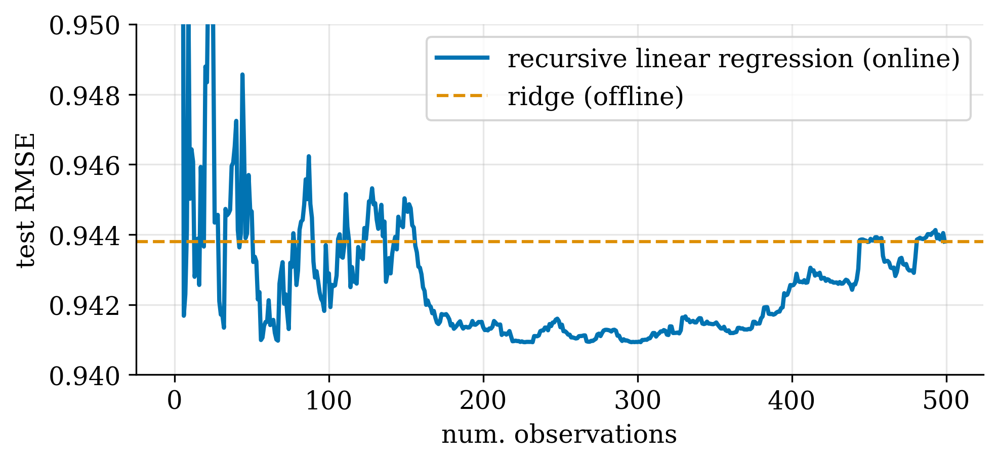 Example: Recursive Bayesian linear regression v.s. Ridge regression